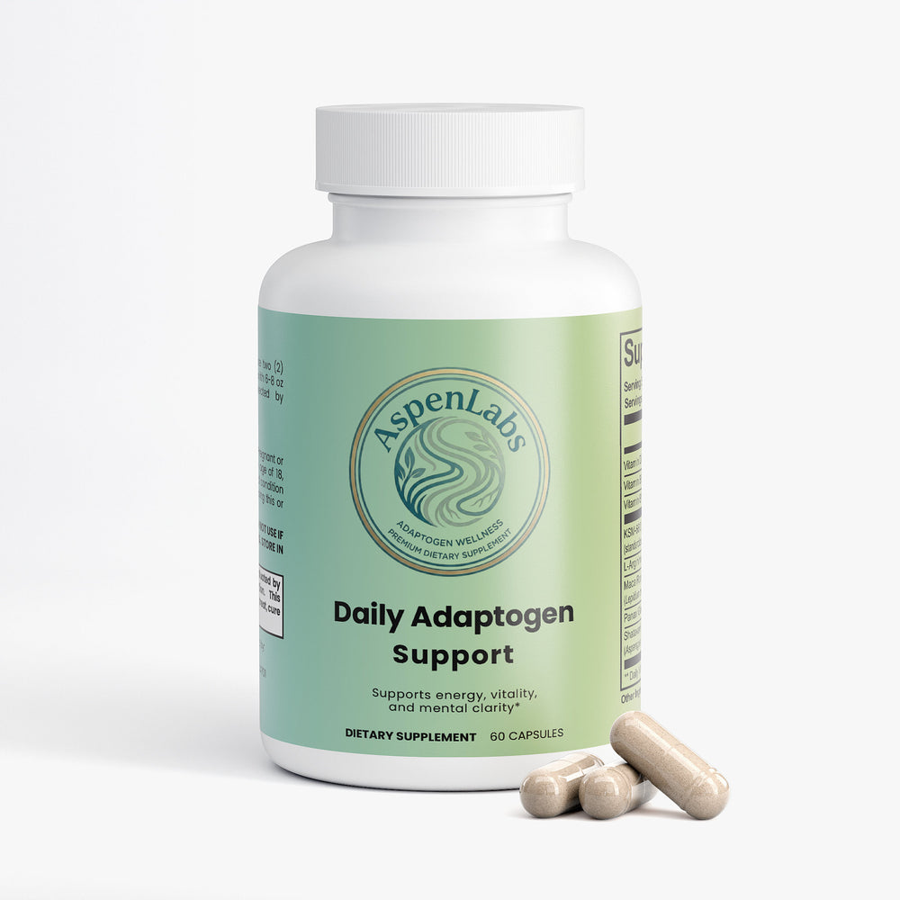 This premium blend combines KSM-66 Ashwagandha with essential vitamins and adaptogens to support daily energy and vitality. It promotes a balanced stress response and overall wellness in convenient vegetarian capsules.